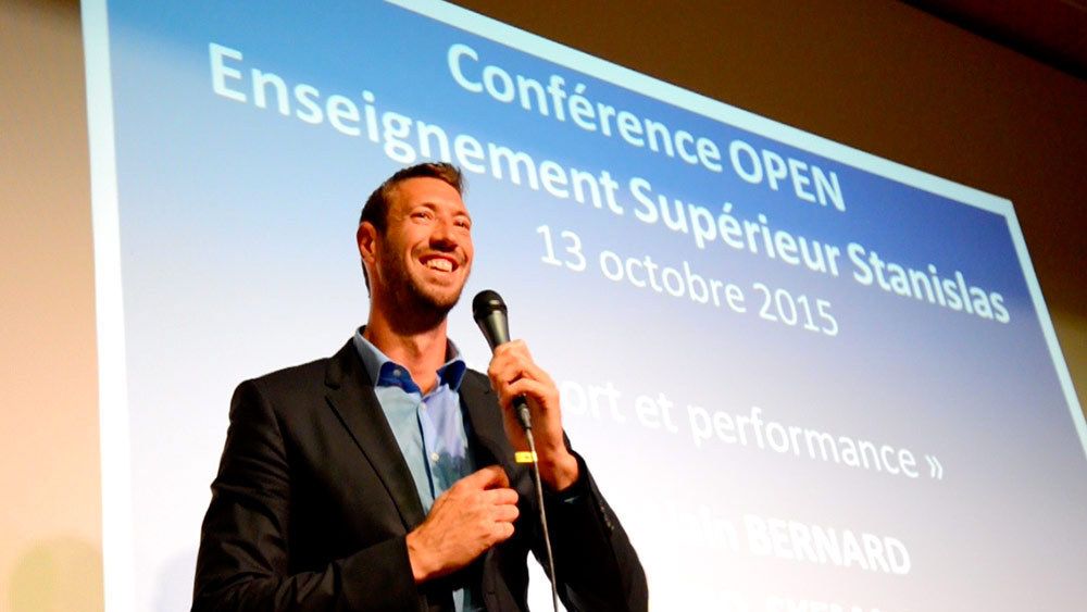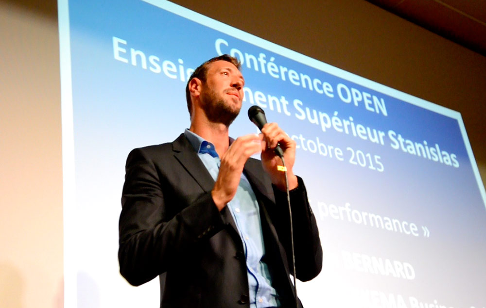 Dans le cadre du Cycle de Conférence OPEN de l'Enseignement Supérieur de Stanislas et sur le thème de "sport et performance", Alain Bernard a détaillé les mécanismes de la performance en isolant les variables clés, tant personnelles que contextuelles. Il a illustré ses propos de multiples expériences et anecdotes grâce à ses années d'entraînement, de compétition et de victoires au plus haut niveau de sa discipline. Le parallèle avec le vécu actuel des étudiants, engagés dans la préparation exigeante de concours sélectifs était saisissant. Et à l'évidence, au vu de l'attention du public pendant la conférence, des questions collectives, puis des échanges individuels privilégiés à l'issue, et ... de la séance d'autographes ! Alain Bernard a apporté un grand nombre de conseils très précieux pour la performance des étudiants. A eux désormais d'en tirer tous les enseignements, enrichis par la mise en perspective de Franck Luccisano, et s'en servir utilement pour mieux se préparer et réussir.