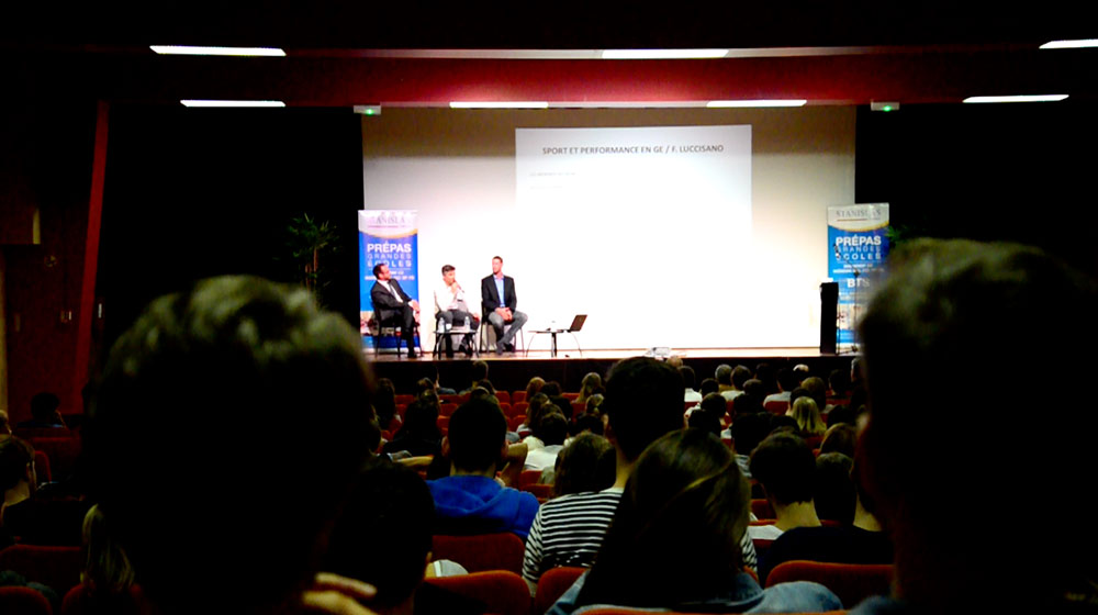 Un moment rare pour ne pas dire unique ... C'est ce qu'ont vécu hier soir les étudiants de Classes préparatoires et de BTS de Stanislas Cannes en écoutant la Conference d'Alain Bernard, double Champion Olympique de natation, et de Franck Luccisano, Professeur de sport en Grande École (Skema).