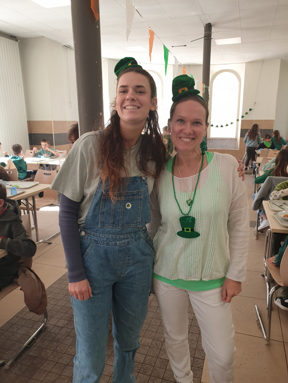 En l'honneur du Saint patron de l'Irlande, la cour a été décorée des couleurs de l'Irlande et les élèves et enseignants se sont vêtus de vert.