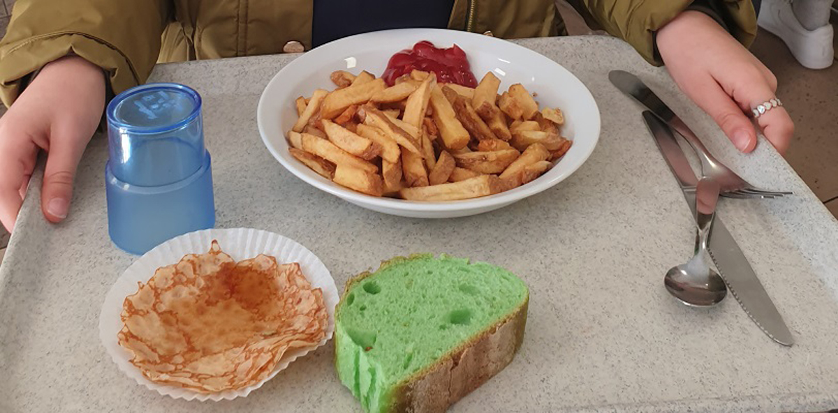 Les élèves ont été invité à déguster le célèbre "Fish&Chips" servi avec du pain vert préparé spécialement pour l'occasion, suivi d'une danse irlandaise dans la cour !