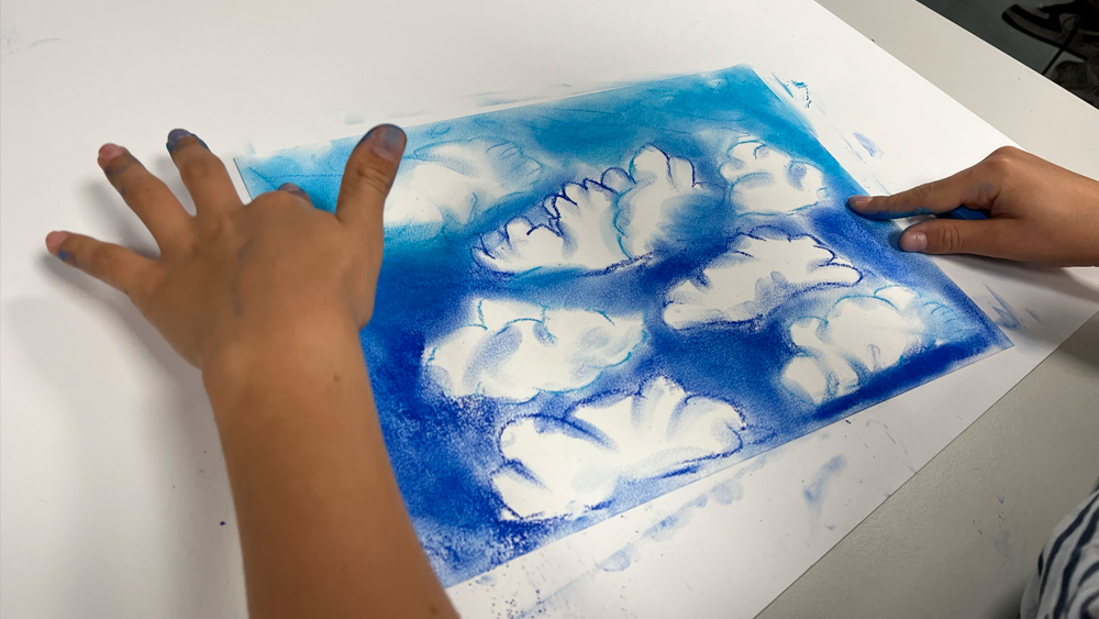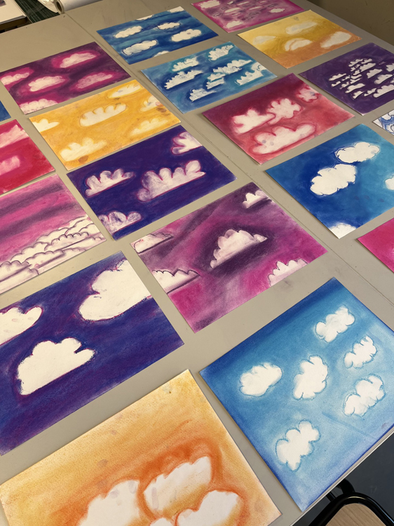 Les élèves de 5ème ont réalisé des ciels nuageux aux pastels secs en classe. Enfin, ils ont fait une interprétation en chorale du morceau avec leur Professeure de Musique.
