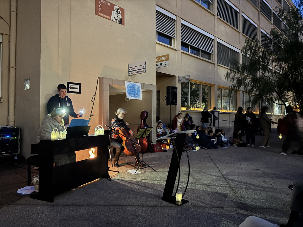 Sur un air de fête à la lumière de nos petites lanternes et au son des chants de nos élèves de CE2, sans oublier les Ave Maria joués par nos 2 professeurs madame Panarello au piano et madame Kederlen au violoncelle. Une belle soirée de fête qui s’est terminée par le partage d’un chocolat chaud et/ou d’un vin chaud avec un délicieux pain d’épices de quoi ressentir quelques saveurs de Noël qui vient.