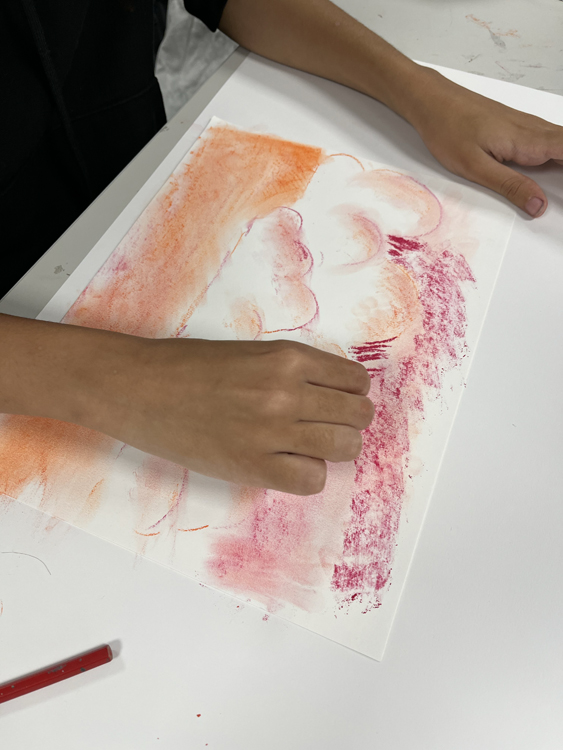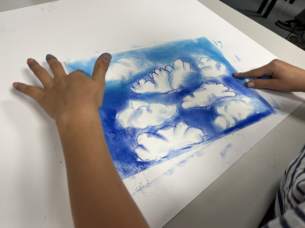 Les élèves de 5ème ont réalisé des ciels nuageux aux pastels secs en classe. Enfin, ils ont fait une interprétation en chorale du morceau avec leur Professeure de Musique.